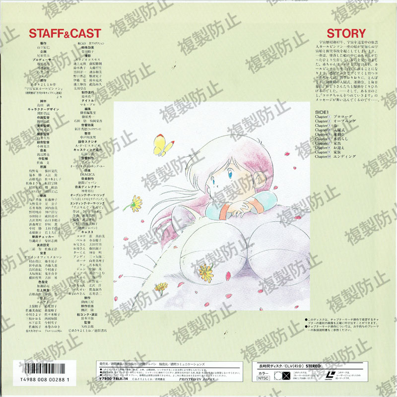 宇宙家族カールビンソン アニメーション 2024.09.122024.10.22 宇宙家族カールビンソン 長時間ディスク/CLV片面45分カラー/NTSCステレオ 発売徳間書店販売徳間コミュニケーションズ本体価格\7,800商品コード78LX-14収録内容C1.プロローグC2.オープニングC3.春C4.入園式C5.運動会C6.木枯らしC7.家出C8.お迎えC9.家族C10.エンディング