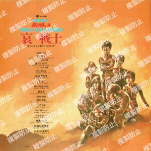 | 収録内容 | SIDE・A 1.哀 戦士 2.風にひとりで 3.ガンダムよ 4.空域間戦争 5.予感 6.赤い閃光の奴 7.意思を SIDE・B 1.我に力を 2.心たちよ 3.ジャブローへ 4.ふるえないで 5.華麗なるを 6.戦場に哀惜を 7.やすらぎ求めて ヴォーカル:井上大輔 作曲:松山祐士/渡辺岳夫/井上大輔 編曲:松山祐士/渡辺岳夫/久石譲/井上大輔 |