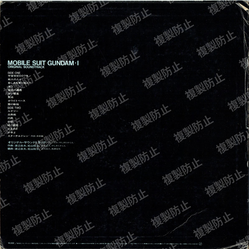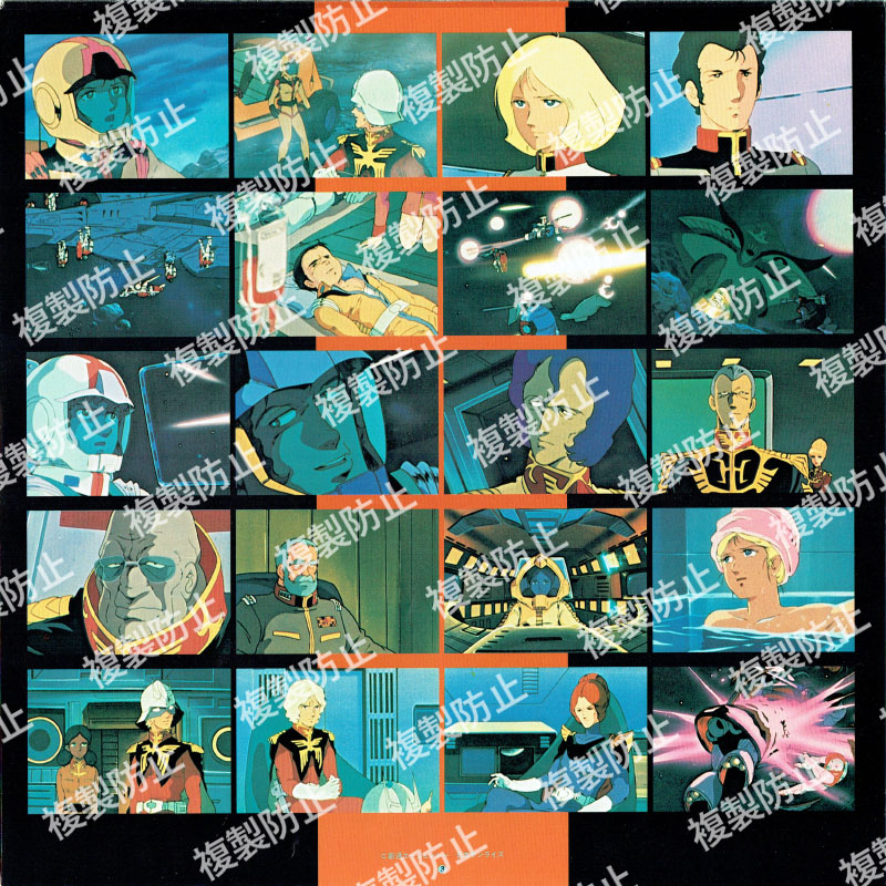 | 収録内容 | SIDE・A 1.宇宙世紀0079 2.戦火の人々 3.悲しみを乗り越えて 4.潜入 5.宿命の遭遇 6.赤い彗星 7.緊迫 8.ホワイトベース 9.闇の動揺 SIDE・B 1.ルナツー 2.白熱戦 3.灼熱 4.何故… 5.戦う勇気 6.ときめき 7.少年よ 8.スターチルドレン |