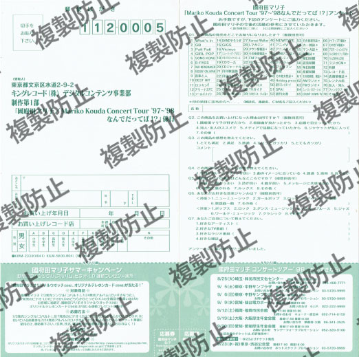 Mariko Kouda Concert Ture ’97-’98 なんでだってば!?