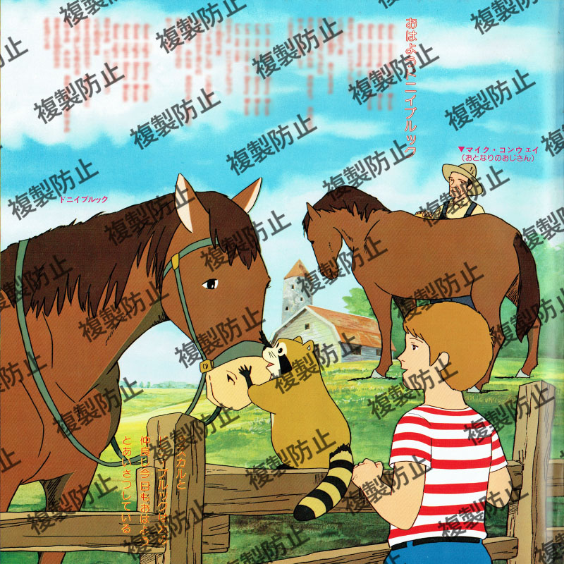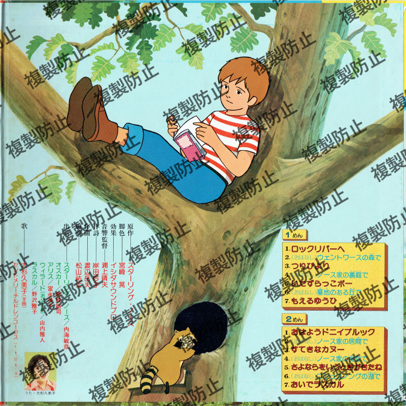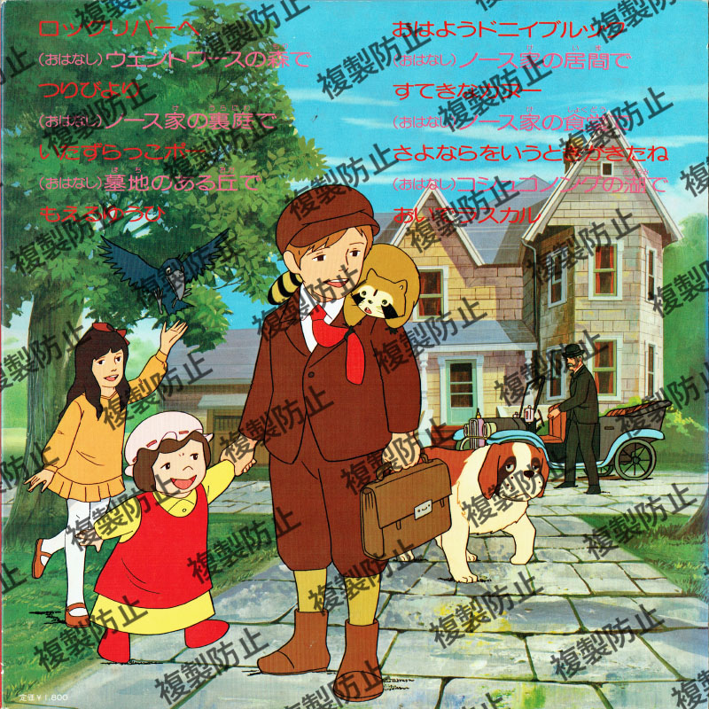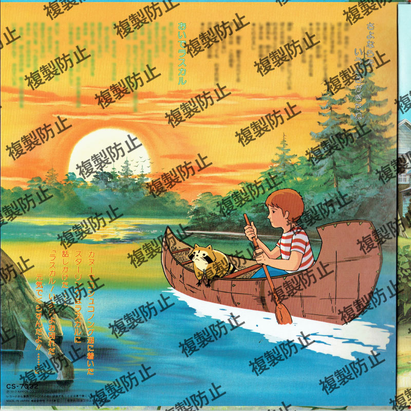 | 収録内容 | 1めん 1.ロックリバーへ 2.(おはなし)ウェントワースの森で 3.つりびより 4.(おはなし)ノース家の裏庭で 5.いたずらっこポー 6.(おはなし)墓地のある丘で 7.もえるゆうひ 2めん 1.おはようドニイブルック 2.(おはなし)ノース家の居間で 3.すてきなカヌー 4.(おはなし)ノース家の食堂で 5.さよならをいうときがきたね 6.(おはなし)コシュコノングの湖で 7.おいでラスカル |