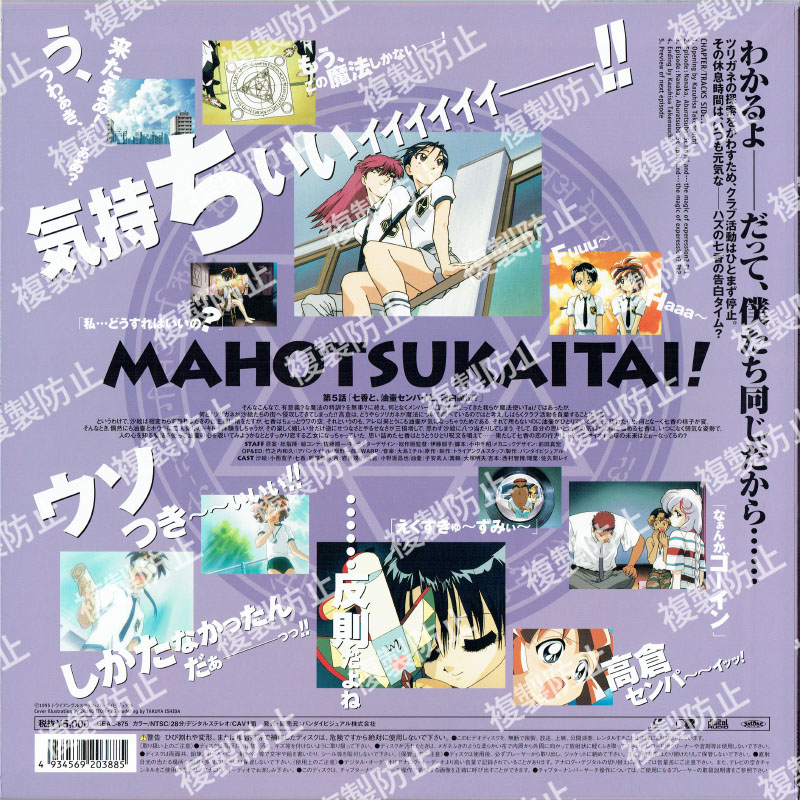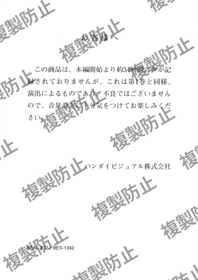 | 収録内容 | 1.Avant-Title by Ichiro Itano & WARP 2.Opening by Kazuhisa Takenouchi 3.Episode:The Big Top, Lady Mizuha, and the Failed Magic Pt1 4.Episode:The Big Top, Lady Mizuha, and the Failed Magic Pt1 5.Ending by Kazuhisa Takenouchi 6.Preview of next episode |