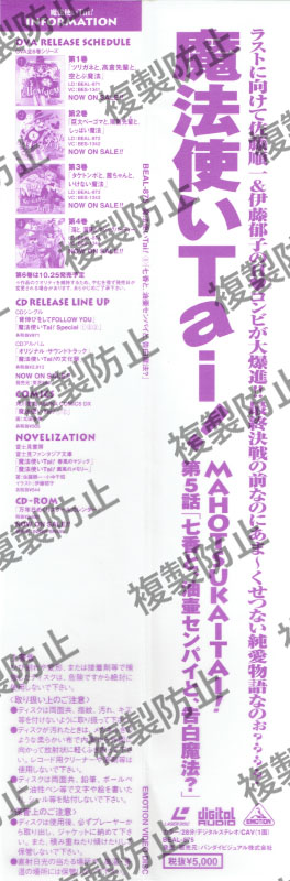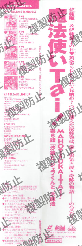 | 標準ディスク/CAV | 1面/28分 | カラー/NTSC | デジタルステレオ |