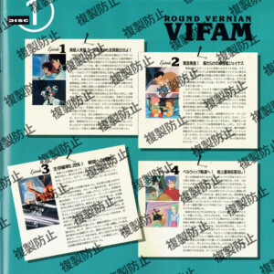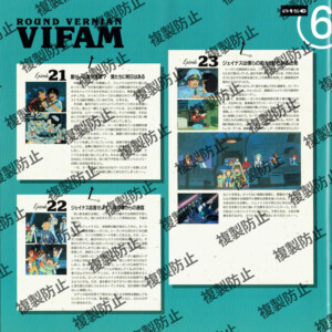 | 収録内容 | SIDE 1 第17話 さよならケイト めざせ新たなる目的地 1:アバンタイトル 2:オープニング 3:Aパート 4:Bパート 5:エンディング 第18話 落書き天国 キャプテン自信喪失!? 6:アバンタイトル 7:オープニング 8:Aパート 9:Bパート 10:エンディング SIDE 2 第19話 もう一つの戦争 ジェイナスの小さなママ 11:アバンタイトル 12:オープニング 13:Aパート 14:Bパート 15:エンディング 第20話 立てスコット! リーダーはきみだ 16:アバンタイトル 17:オープニング 18:Aパート 19:Bパート 20:エンディング SIDE 3 第21話 敵ビーム波状攻撃? 僕たちに明日はある 1:アバンタイトル 2:オープニング 3:Aパート 4:Bパート 5:エンディング 第22話 ジェイナス応答せよ! 地球軍からの通信 6:アバンタイトル 7:オープニング 8:Aパート 9:Bパート 10:エンディング SIDE 4 第23話 ジェイナスは僕らの船だ!! 新たなる出発 11:アバンタイトル 12:オープニング 13:Aパート 14:Bパート 15:エンディング 16:バイファムLD発売記念企画 スタッフ座談会 17:テレビCM |