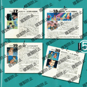 | 収録内容 | SIDE 1 第9話 雷鳴の中の敵襲 僕達だけで戦うんだ! 1:アバンタイトル 2:オープニング 3:Aパート 4:Bパート 5:エンディング 第10話 宇宙(そら)か地か― 基地攻防の大決戦!! 6:アバンタイトル 7:オープニング 8:Aパート 9:Bパート 10:エンディング SIDE 2 第11話 さらばベルウィック ジェイナスの旅立ち 11:アバンタイトル 12:オープニング 13:Aパート 14:Bパート 15:エンディング 第12話 発進準備完了! 地球へ向けて出発だ!! 16:アバンタイトル 17:オープニング 18:Aパート 19:Bパート 20:エンディング SIDE 3 第13話 射撃訓練開始! 恐怖の宇宙戦闘初体験!! 1:アバンタイトル 2:オープニング 3:Aパート 4:Bパート 5:エンディング 第14話 敵のスパイか!? 舞いこんだ謎の逃亡者 6:アバンタイトル 7:オープニング 8:Aパート 9:Bパート 10:エンディング SIDE 4 第15話 衝撃!! 異星人が残した意外なメッセージ 11:アバンタイトル 12:オープニング 13:Aパート 14:Bパート 15:エンディング 第16話 総員援護体制! カチュアをつれもどせ! 16:アバンタイトル 17:オープニング 18:Aパート 19:Bパート 20:エンディング |